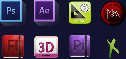 绘画基础、Photoshop、Painter、Flash、AutoCAD、3dsMax、Maya